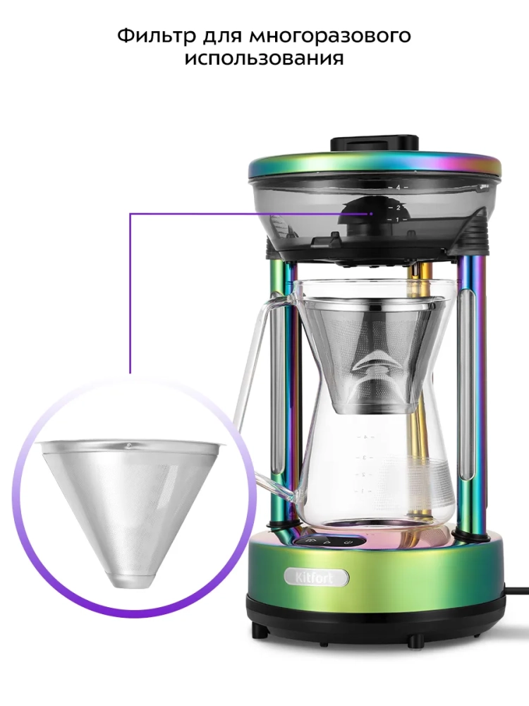 Кофеварка Кемекс Kitfort КТ-7488 готовит вкусный и ароматный кофе.