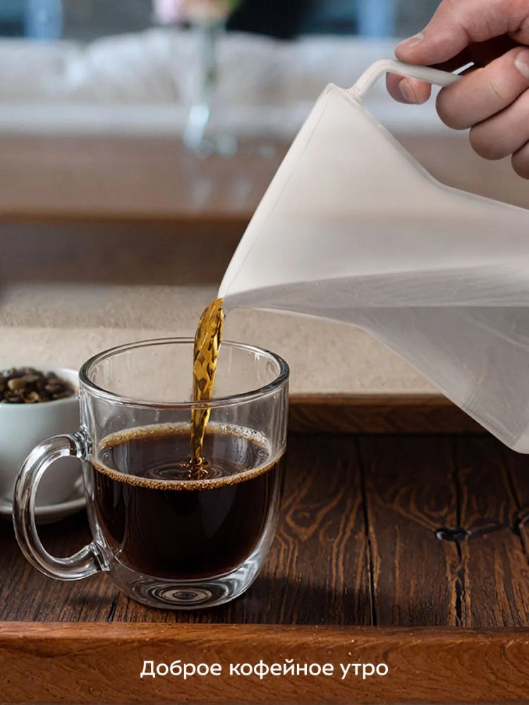 Резервуар емкостью 0,6 л позволяет за один раз приготовить кофе на 4 чашки по 125 мл. На кофейник нанесена мерная шкала, благодаря которой вы сможете точно дозировать необходимый уровень напитка. Кофейник с мерной шкалой прозрачный, поэтому вы всегда можете видеть сколько кофе еще осталось.