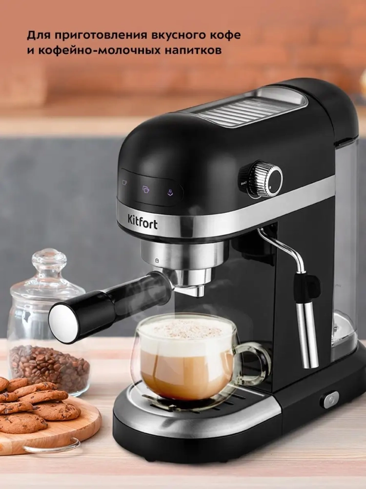 С помощью этой кофеварки вы сможете наслаждаться любимым кофе каждый день, будь то крепкий эспрессо или нежный латте. Резервуар для воды легко снимается и заполняется, а трубка для подачи молока обеспечивает идеальную текстуру пенки. Электрическая кофеварка Kitfort — это надежный помощник на вашей кухне, который подарит вам минуты наслаждения ароматным кофе.