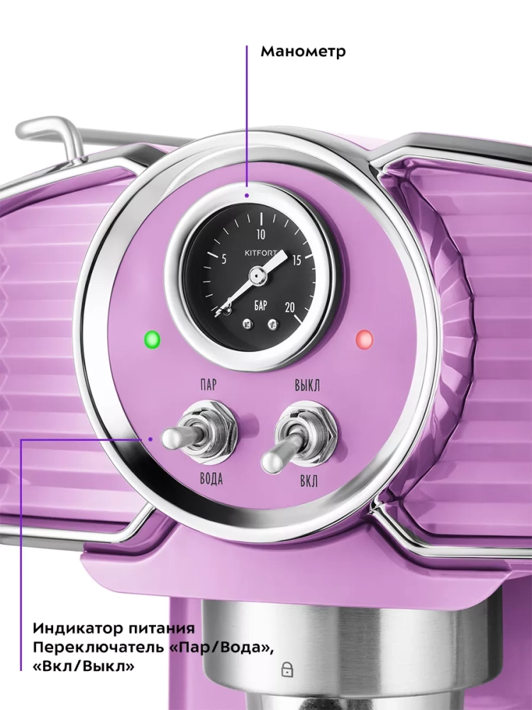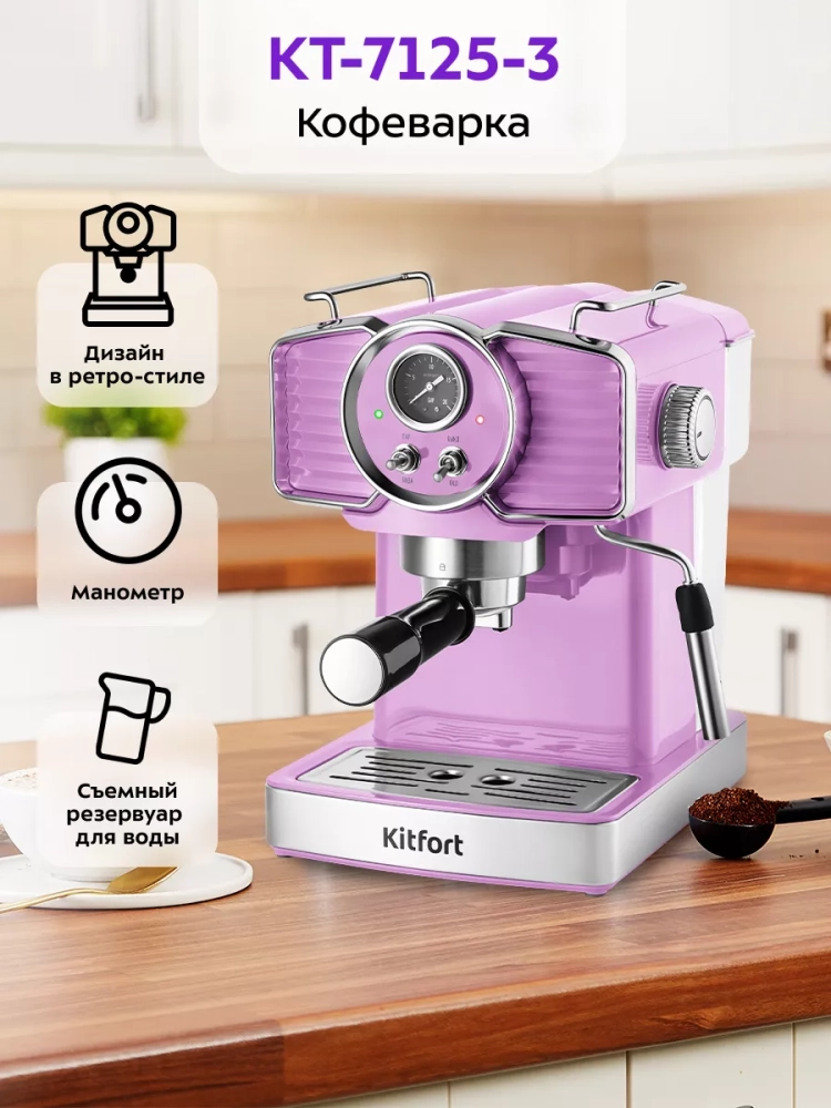 Рожковая кофеварка Kitfort КТ-7125 поможет приготовить кофе эспрессо, капучино или латте, а также множество других видов кофе на ваш вкус. С помощью рожковой кофеварки также можно подогреть сок, остывший чай и другие напитки. Дизайн прибора, выполненный в ретро-стиле, украсит ваш интерьер.