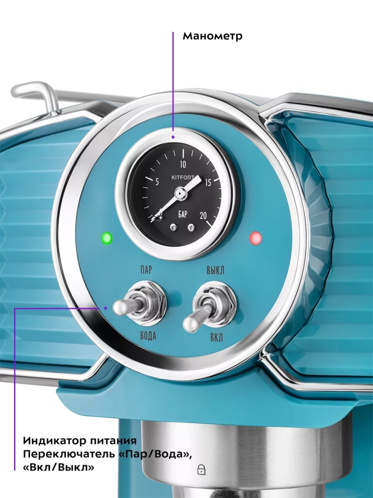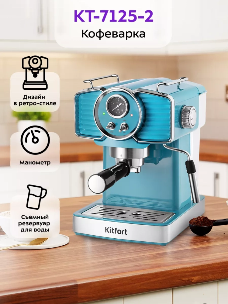 Рожковая кофеварка Kitfort КТ-7125 поможет приготовить кофе эспрессо, капучино или латте, а также множество других видов кофе на ваш вкус. С помощью рожковой кофеварки также можно подогреть сок, остывший чай и другие напитки. Дизайн прибора, выполненный в ретро-стиле, украсит ваш интерьер.