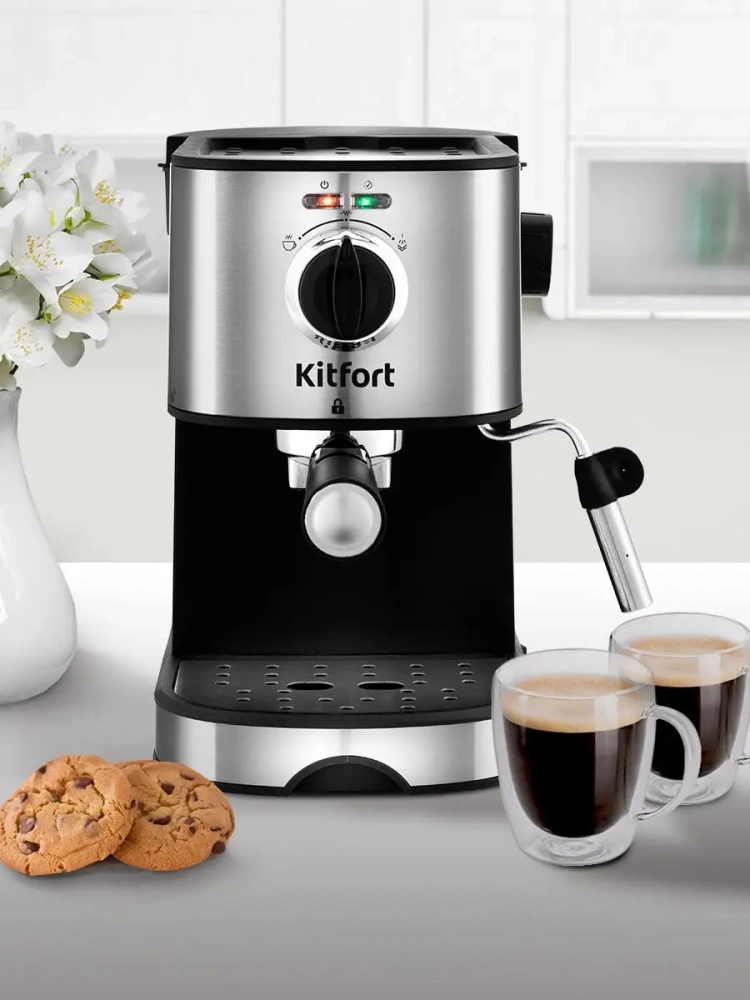 Рожковая кофеварка Китфорт КТ-753 поможет приготовить кофе эспрессо, капучино или латте, а также множество других видов кофейных напитков на ваш вкус. С помощью рожковой кофеварки вы можете подогреть паром остывший чай или молоко. Ключевым отличием рожковой кофеварки от всех остальных кофеварок, турок и прочих кофейных устройств является наличие рожка, также его часто называют холдер. Молотый кофе помещается в фильтр рожка, прессуется в таблетку, после чего горячая вода проливается сквозь кофе под давлением. В результате получается кофе без примеси гущи. Этот способ позволяет приготовить напиток, сохранив оригинальный вкус зерен. Еще одно значимое достоинство метода - быстрота приготовления кофе. Молочную пенку для капучино можно делать самостоятельно. Капучинатор в кофеварке - это паровая трубка с насадкой панарелло. Его просто нужно погрузить в холодное молоко. При открытии пара в чашке взбивается густая молочная пена.