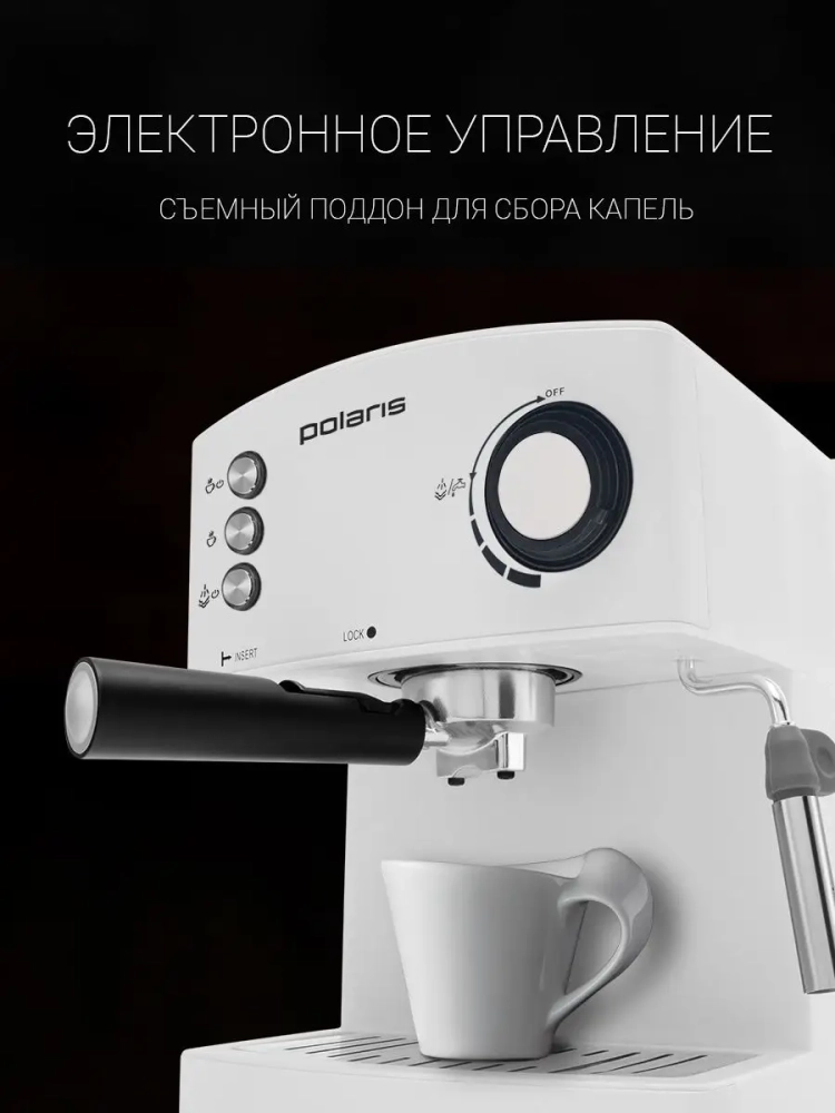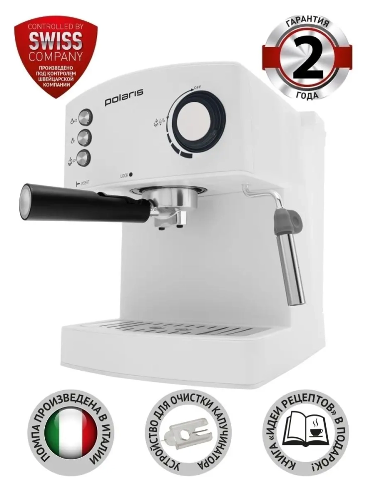 Итальянская помпа с давлением 15 бар. Устройство для очистки капучинатора. Книга «Идеи рецептов» в подарок. Независимо от страны и национальности, такой ароматный и вдохновляющий напиток как кофе любит каждый человек. За многовековую историю существования этого чудо-напитка появились и усовершенствовались не только его вкусовые качества, но и приборы, благодаря которым мы можем порадовать себя этим напитком в любое время. Такой моделью является Polaris Adore Crema PCM 1527AE. Кофеварка PCM 1527AE имеет изысканный дизайн, который сочетается с уникальными техническими характеристиками. Ряд всех возможностей этой кофеварки порадует каждого потребителя, который ценит комфорт во всем.