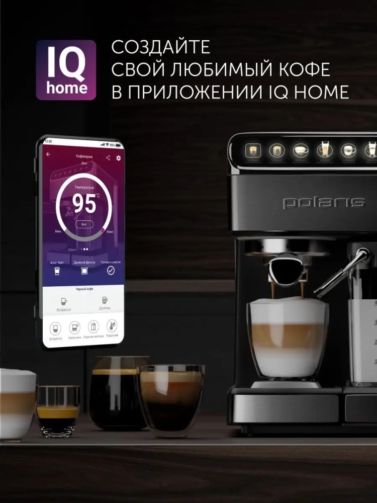 Кофеварка рожковая PCM 1540 WI-FI IQ Home с капучинатором