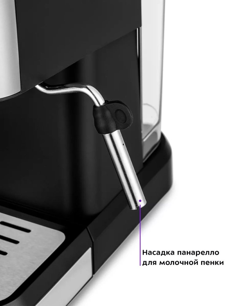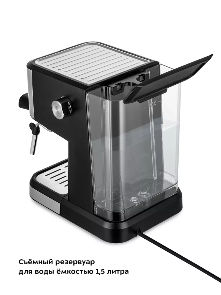 Кофеварка оснащена съемным резервуаром для воды и металлическим рожком. Металлический рожок хорошо прогревает напиток, а сам напиток получается насыщенным, густым и с хорошей пенкой.