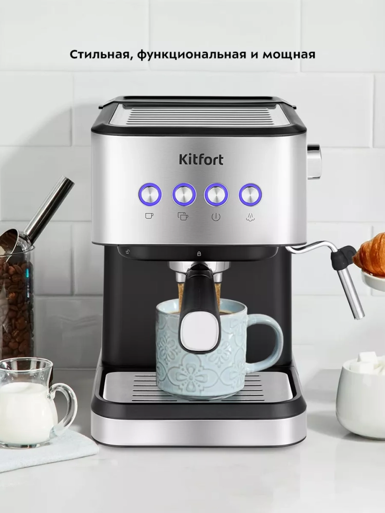 Рожковая кофеварка Китфорт КТ-7140 поможет приготовить кофе эспрессо, капучино или латте, а также множество других видов кофе на ваш вкус. С помощью рожковой кофеварки также можно подогреть сок, остывший чай и другие напитки.