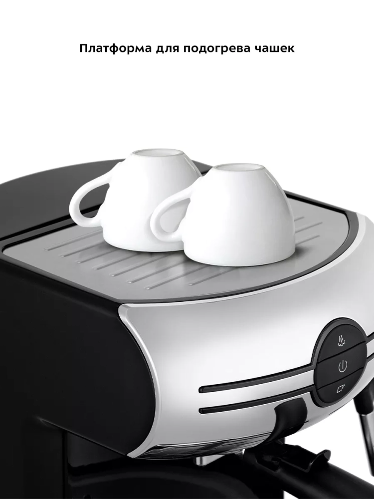 Платформа с подогревом не имеет своего нагревательного элемента, а нагревается от тепла, выделяемого при работе бойлера. На ней удобно располагать чашки и рожок, чтобы они успели согреться перед приготовлением напитка. Также на платформе с подогревом можно сушить чашки и рожок после мытья.