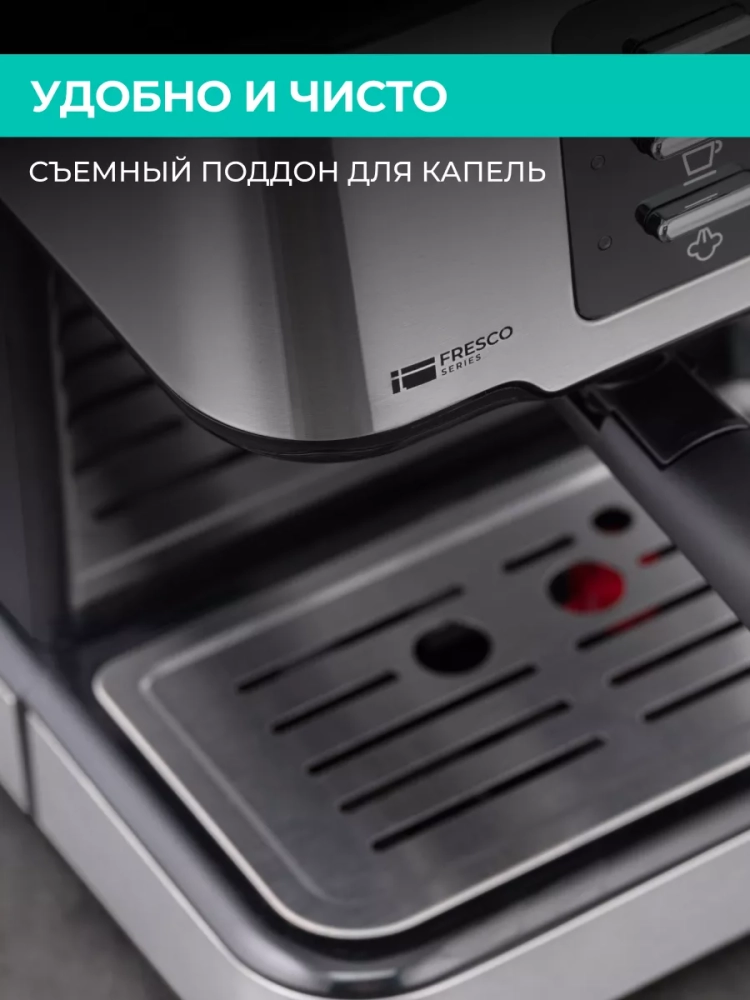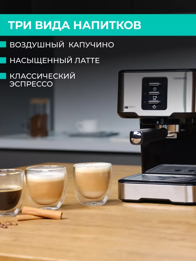 Заряд бодрости с кофеварками Timberk! Мощная помпа создает высокое давление 20 бар благодаря технологии High Extraction. Капучинатор обеспечивает высокую мощность подачи пара для получения воздушной молочной пенки. Прибор отвечает требованиям безопасности и оснащен функциями защиты от перегрева и перегрузки. Система энергосбережения выключает прибор через 25 минут после завершения использования. В комплект прибора входят ложка с уплотнителем для трамбовки кофейного порошка, съемный фильтр для кофейного рожка на две порции, съемный поддон для капель.