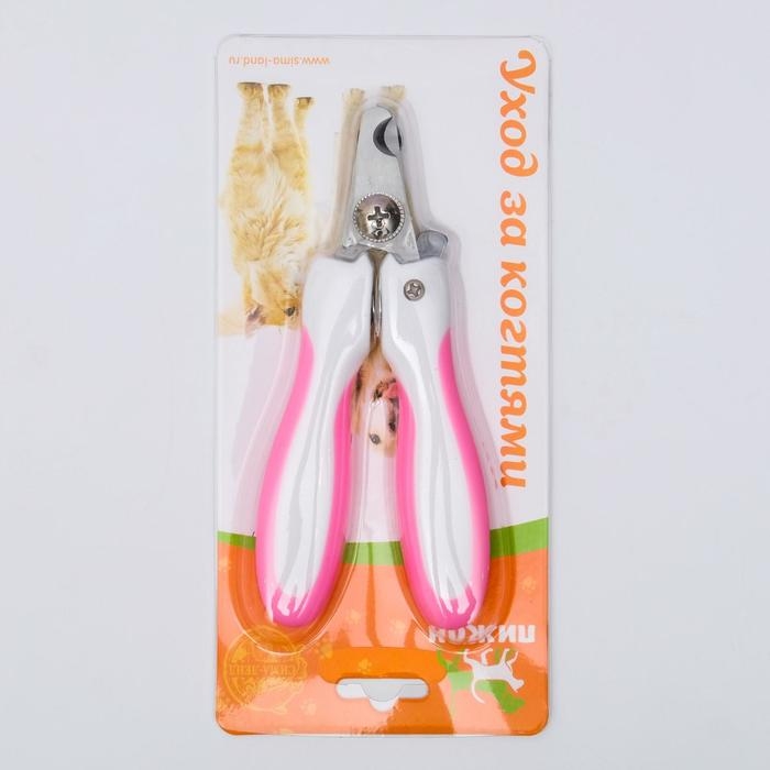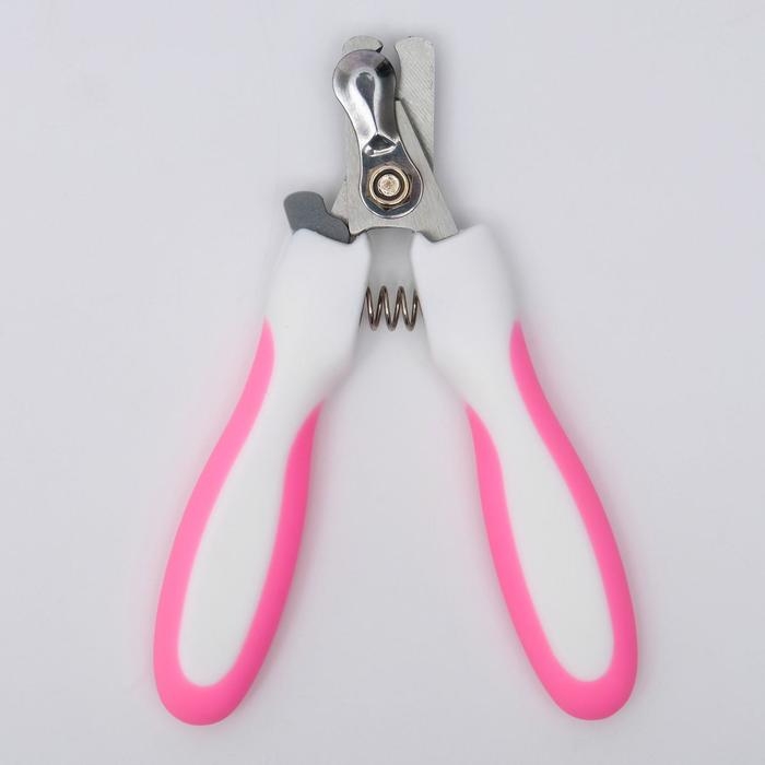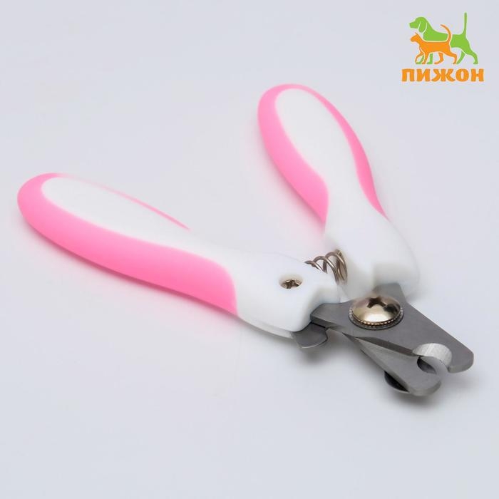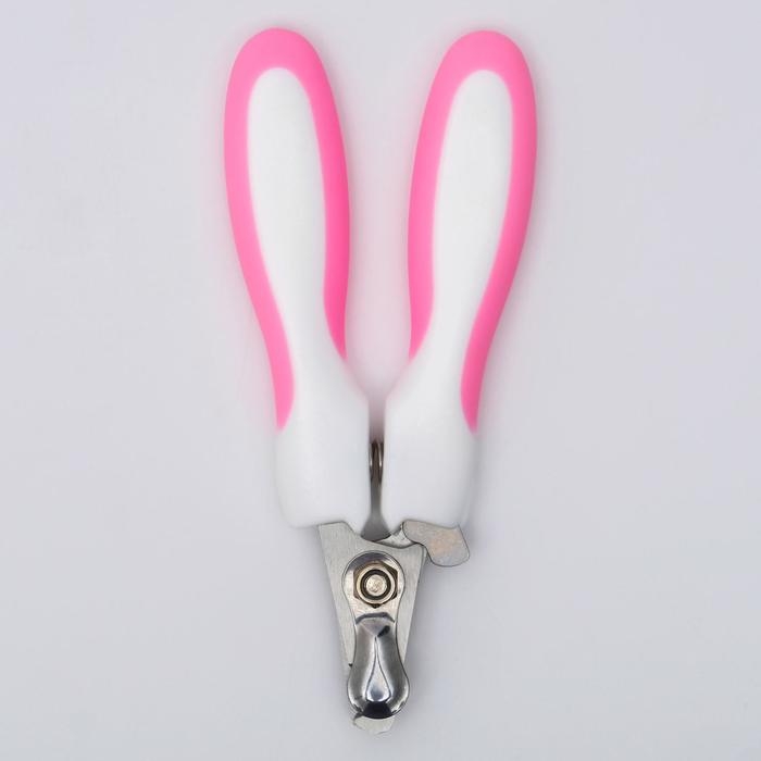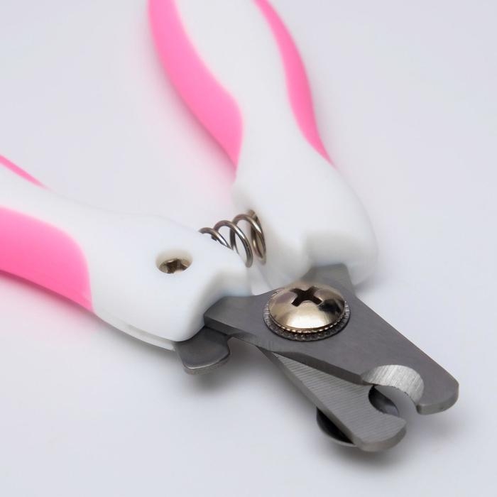 Ножницы-когтерезы с мягкими ручками, отверстие 8 мм, бело-розовые