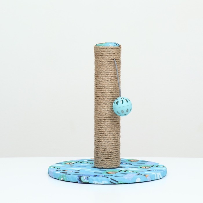 Когтеточка-столбик "Пижон" с шариком, 29 х 29 х 32 см, джут, ткань ПВХ, бирюзовая