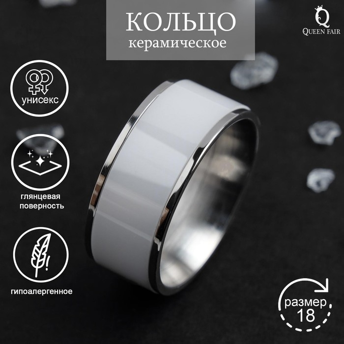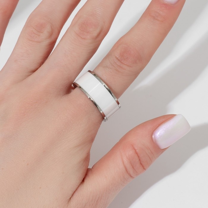 Кольцо керамика «Вайд», 1 см, цвет белый в серебре, 18 размер