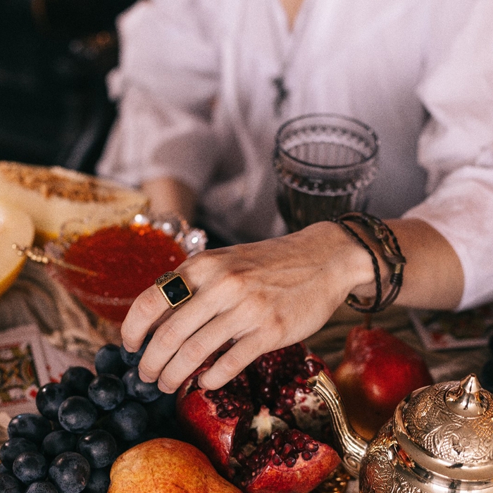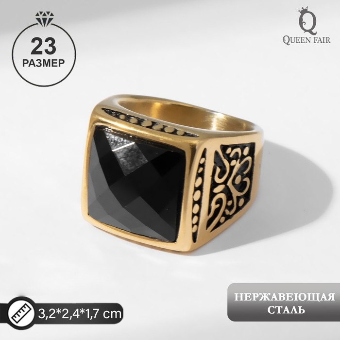 Кольцо мужское «Перстень» ажур, цвет чёрный в золоте, 23 размер