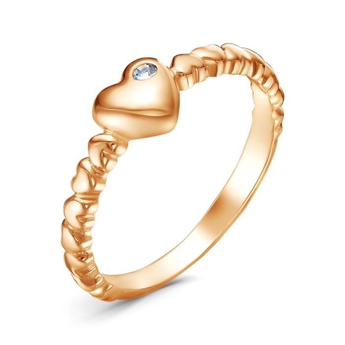 Кольцо «Сердца», розовое золочение, цвет белый, 16,5 размер