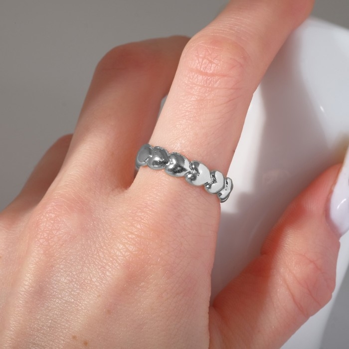 Кольцо «Сердечки» ряд, цвет серебро, безразмерное