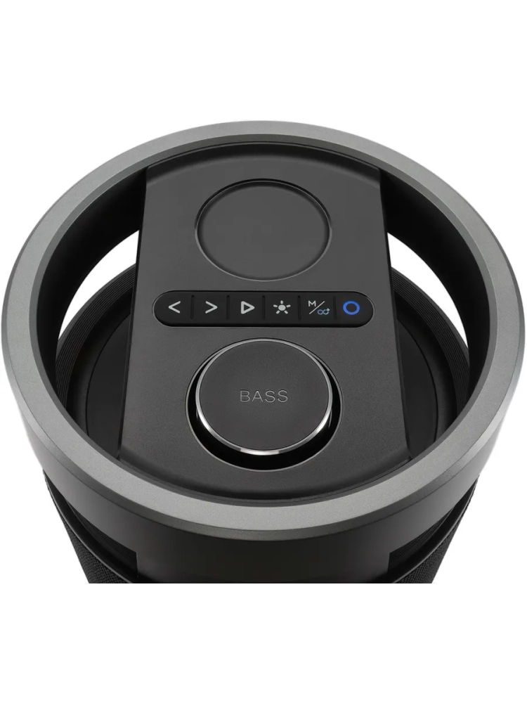 В колонку встроен эквалайзер, который позволяет усиливает низкие частоты. Переключения режимов воспроизведения и управление колонкой находятся на верхней панели. Кнопки удобны для нажатия вслепую, поворотный регулятор позволяет плавно увеличивать или уменьшать уровень громкости.