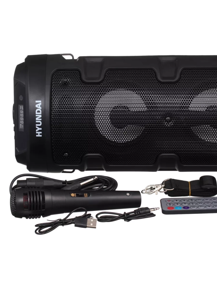 Hyundai H-MC160 — компактная и портативная акустическая система, способная работать от сети и автономно. Батарея обеспечивает до 6 часов непрерывного воспроизведения. Это идеальный выбор для вечеринок, прогулок и домашних развлечений.
