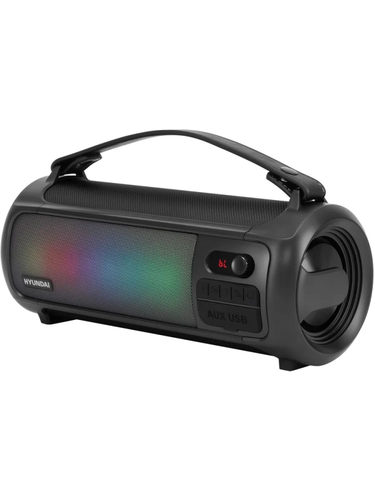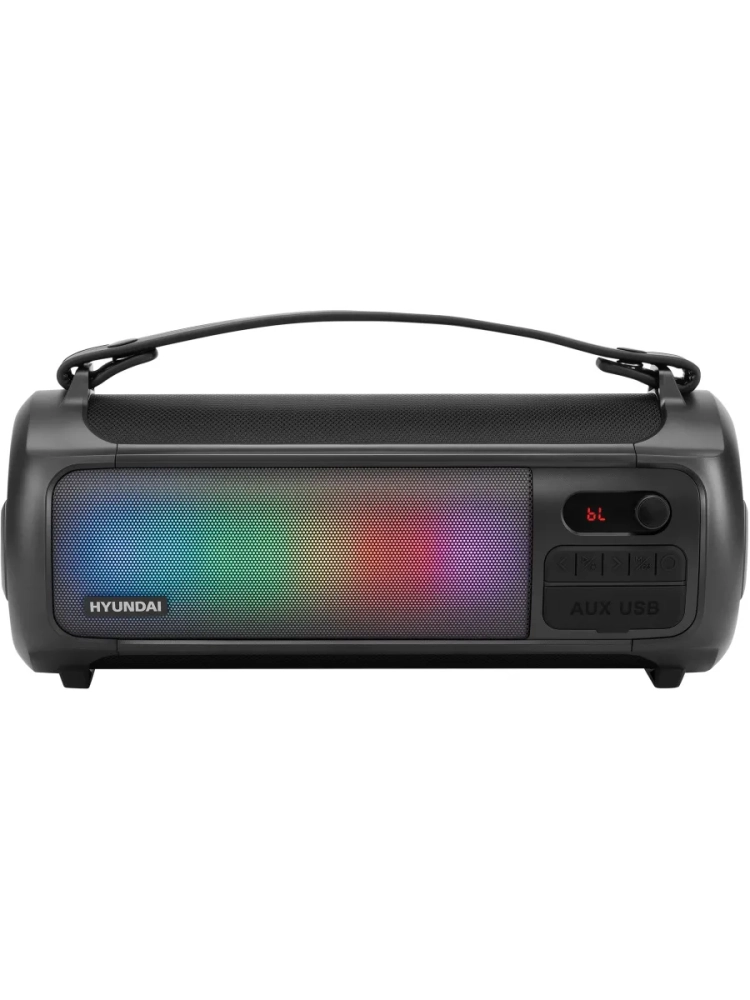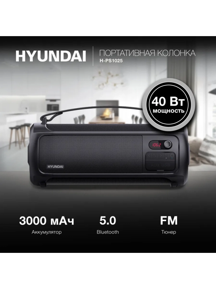 Колонка портативная Hyundai H-PS1025 черный, мощность 40Вт, акустический тип 2.0, интерфейс подключения BT, питание от сети/от аккумулятора, дисплей