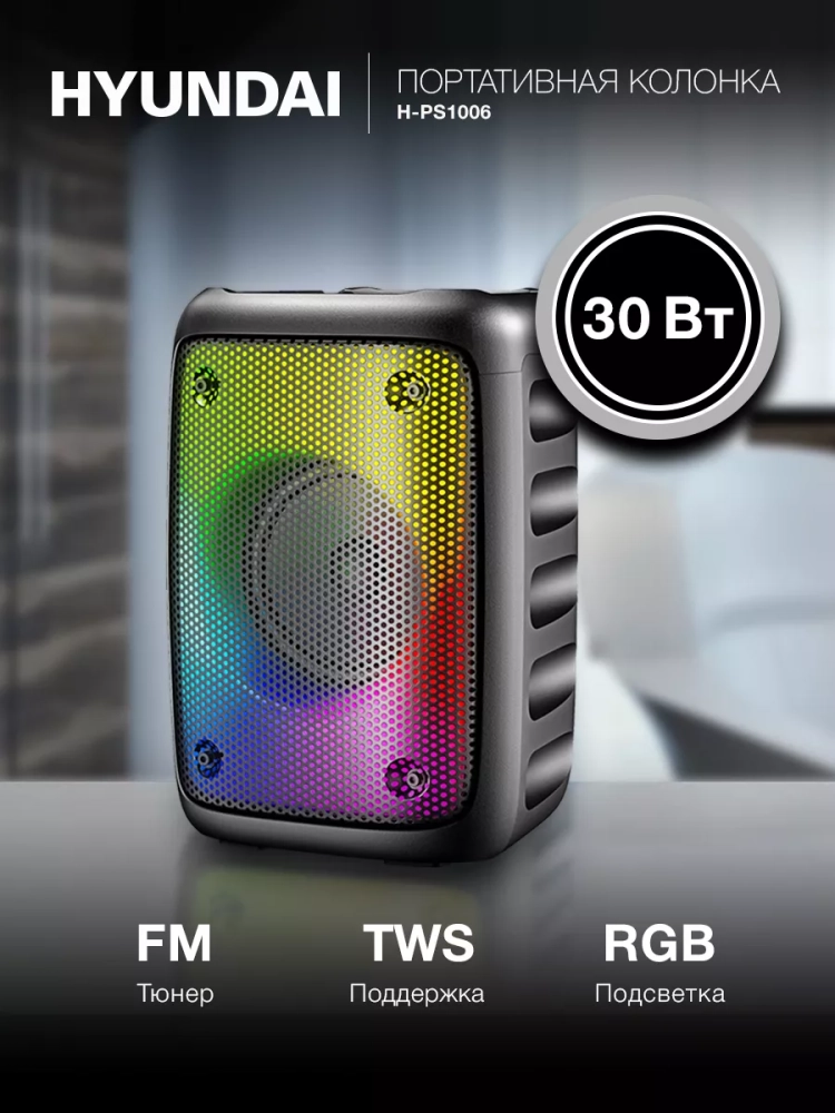 Hyundai H-PS1006 – это мощная и компактная портативная акустика, которая наполнит музыкой любую поездку.