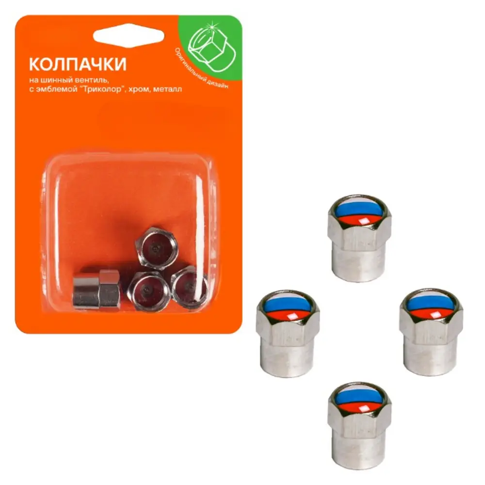 Колпачки на шинный вентиль, с эмблемой «Триколор», 4 шт.