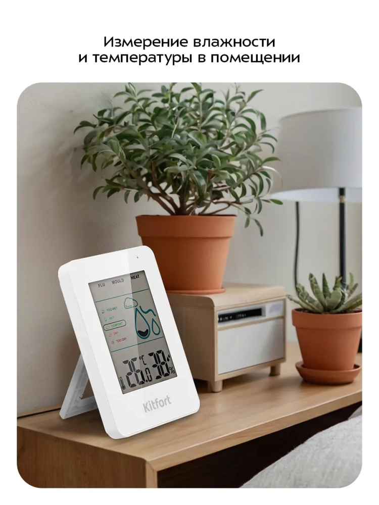 Благодаря компактному размеру и стильному дизайну термогигрометр легко впишется в ваш интерьер.