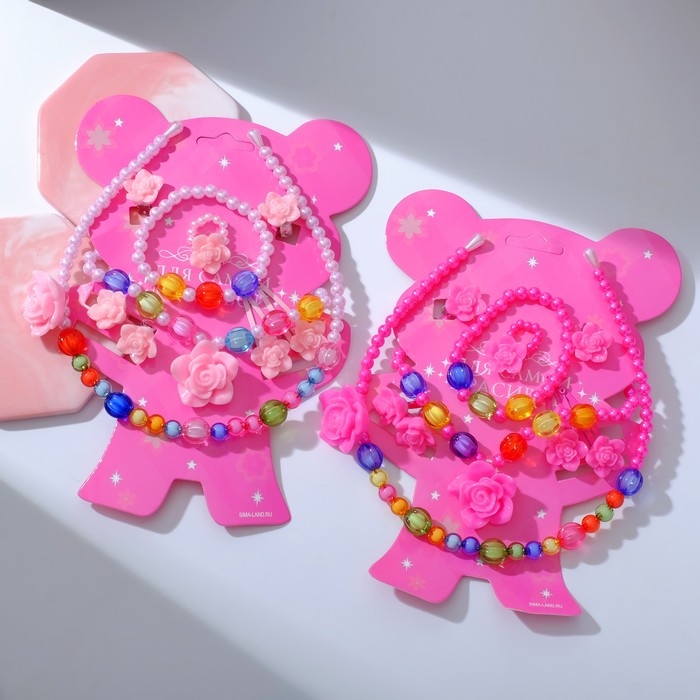 Комплект детский «Выбражулька» 9 предметов: ободок, 2 резинки, 2 заколки, клипсы, кулон, браслет, кольцо, розы, цвет МИКС