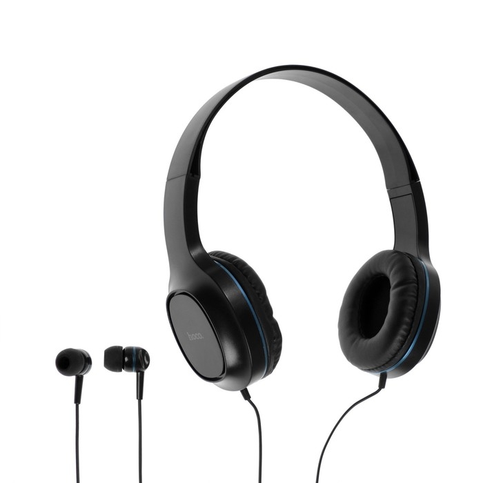 Комплект наушников Hoco W24, проводные, полноразмерные + вакуумные, проводные, синие
