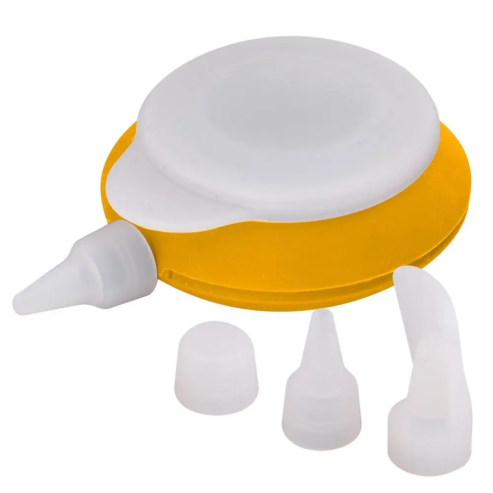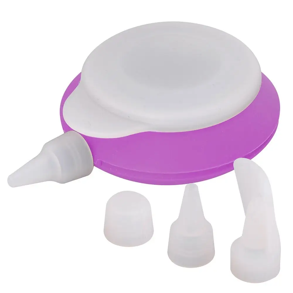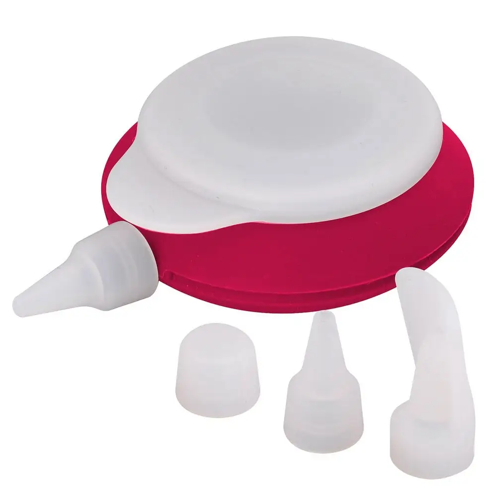 Декоратор предназначен для приготовления и декорирования выпечки, кондитерский изделий. Использование насадок различного размера позволит получить желаемую толщину выдавливаемого крема. Также с использованием декоратора можно изготовить декоративные украшения из шоколадной глазури. Крышечка для декоратора поможет хранить некоторое время в холодильнике остатки крема. В комплект входит емкость для крема и 3 насадки. Изготовлено из силикона. Размер 10х9см, высота 4см. Объем 100 мл.