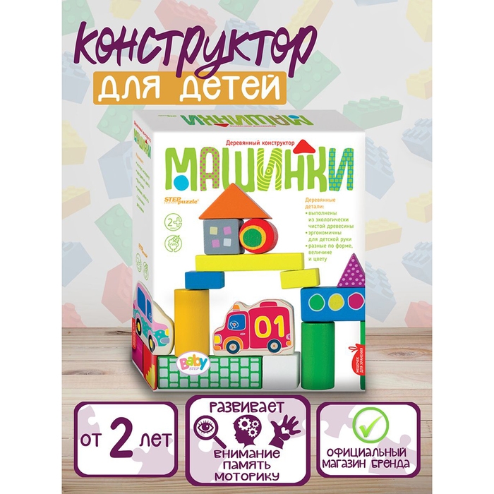 - Конструктор выполнен из экологически чистого материала — дерева.