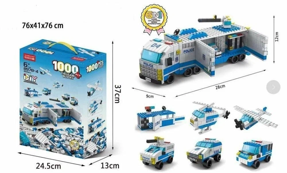 Конструктор аналог LEGO Technic машина полиции состоит из 1000 деталей! Собирая такой конструктор отлично развивается мелкая моторика рук, усидчивость и внимательность. Набор сделан из качественных и безопасных материалов, после сборки данной модели боевой машины есть возможность играться с ним и не бояться, что он развалится. Блочный конструктор.