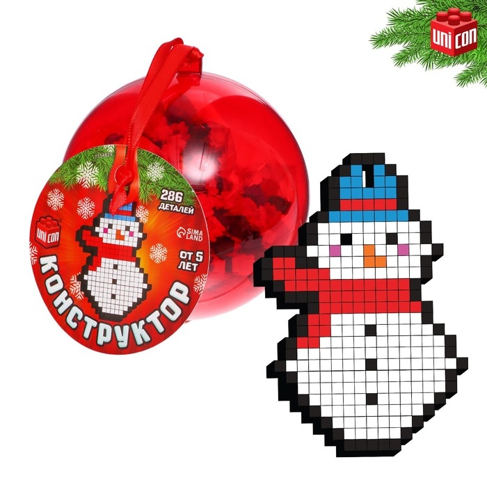 Пиксельный конструктор состоит из множества блоков, которые сцепляются между собой. С этим набором ребёнок соберёт новогоднюю композицию и с пользой проведёт время.