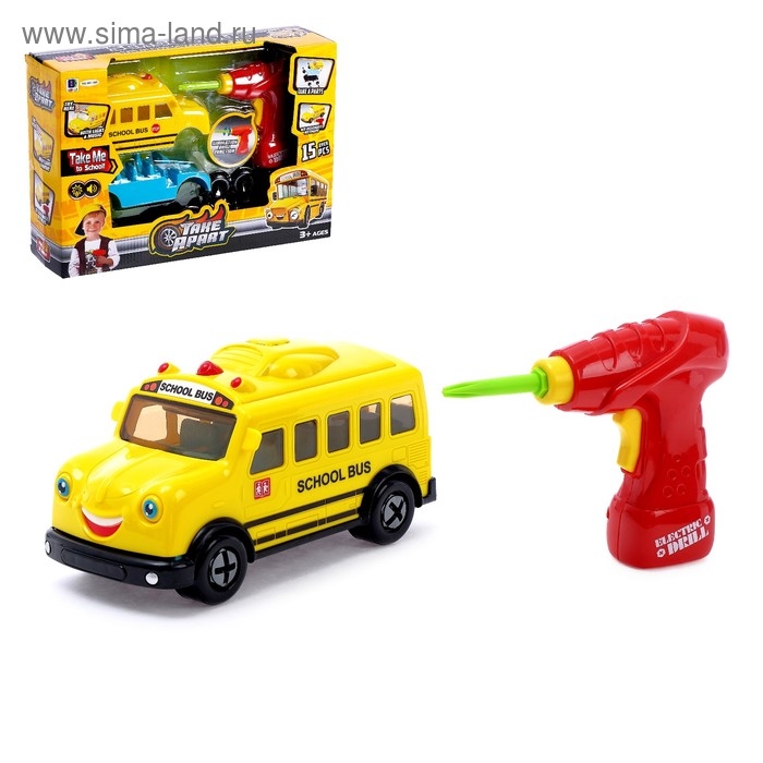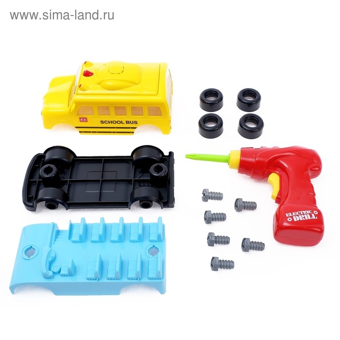 Конструктор винтовой «Автобус» с электрическим шуруповёртом, 18 деталей