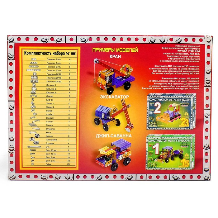 Конструктор «Юный гений №3», 297 деталей, 31 модель, цветной