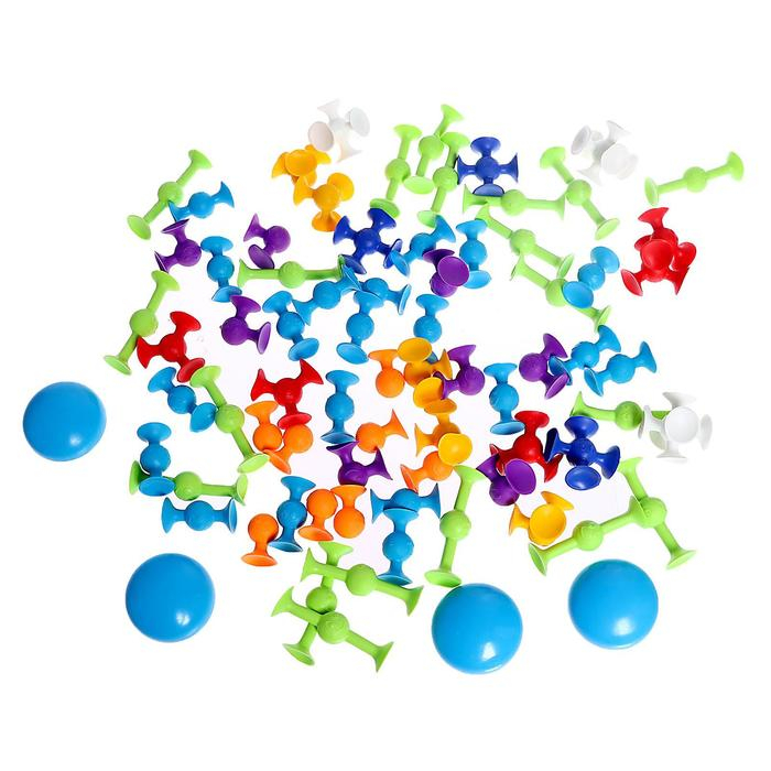 - Элементы конструктора — это шарики, от которых отходят отростки с присосками.
