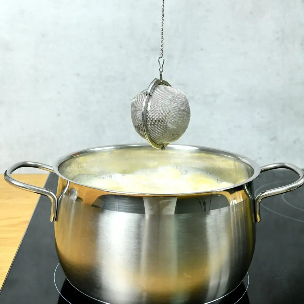 Заполните шар специями и опустите в готовящееся блюдо, после приготовления достаньте шарик. По такому же принципу опустите шарик с заваркой в чайник или в кружку с горячей водой. Наличие цепочки позволяет избежать ожогов во время извлечения шарика. Изготовлено из коррозионностойкой (нержавеющей) стали. После применения рекомендуется промыть губкой с использованием жидких моющих средств. Хранить в сухом помещении. Диаметр 6,5 см.