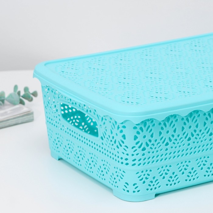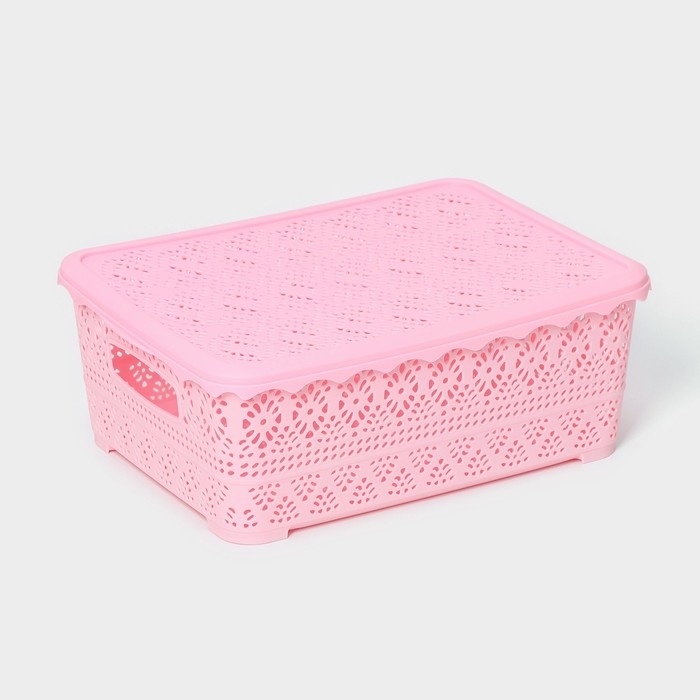 Контейнер для хранения с крышкой «Ажур», пластик, 35×27×12 см, цвет МИКС