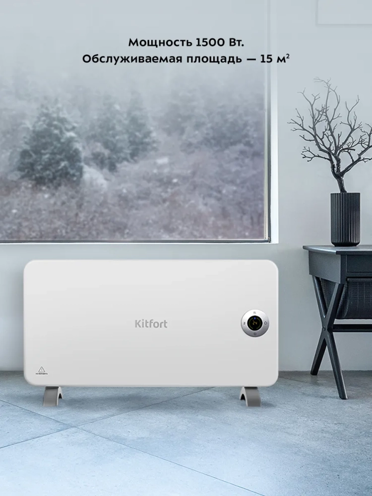 Конвекторный напольный обогреватель электрический КТ-2708 - 1500 Вт от Kitfort предназначен для эффективного обогрева воздуха в различных помещениях, таких как квартиры, загородные дома и офисы. Этот прибор оснащен двумя уровнями мощности и электронным термостатом, что позволяет точно регулировать температуру в помещении. На корпусе устройства расположена сенсорная панель управления и дисплей для удобства использования. Вы также можете управлять работой обогревателя через приложение Tuya Smart на вашем телефоне или планшете. Обогреватель KT-2708 относится к конвекторному типу и может быть установлен как на полу, так и на стене благодаря комплекту ножек и креплений. Он оснащен защитой от перегрева и имеет степень защиты IP24 от воды, что позволяет безопасно использовать его даже в ванной комнате. Прибор подходит для помещений площадью до 15 кв.м., однако при небольшой разнице температур снаружи и внутри помещения, а также при хорошей теплоизоляции обслуживаемая площадь может быть больше. Хотя данный обогреватель не является автономным дизельным отопителем или газовым устройством, он предлагает надежное решение для поддержания комфортной температуры без необходимости использования бензина или дизеля. Это делает его отличной альтернативой автономке 12в дизельной или другим видам отопителей. Таким образом, конвекторный обогреватель Kitfort KT-2708 - это современное устройство с возможностью дистанционного управления терморегулятором через смартфон, обеспечивающее комфортное тепло в вашем доме без лишних хлопот.