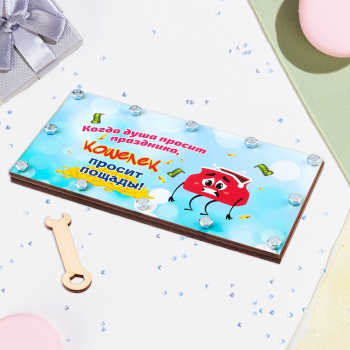 Конверт деревянный с гайками "Когда душа просит праздника"