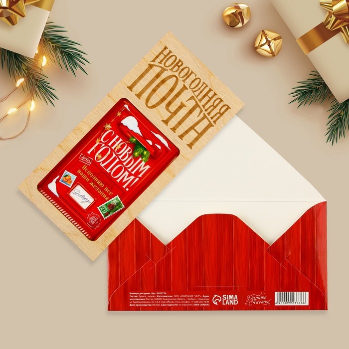 Конверт для денег деревянный резной «Новогодняя почта», почтовый ящик, 16.5 х 8 см, Новый год