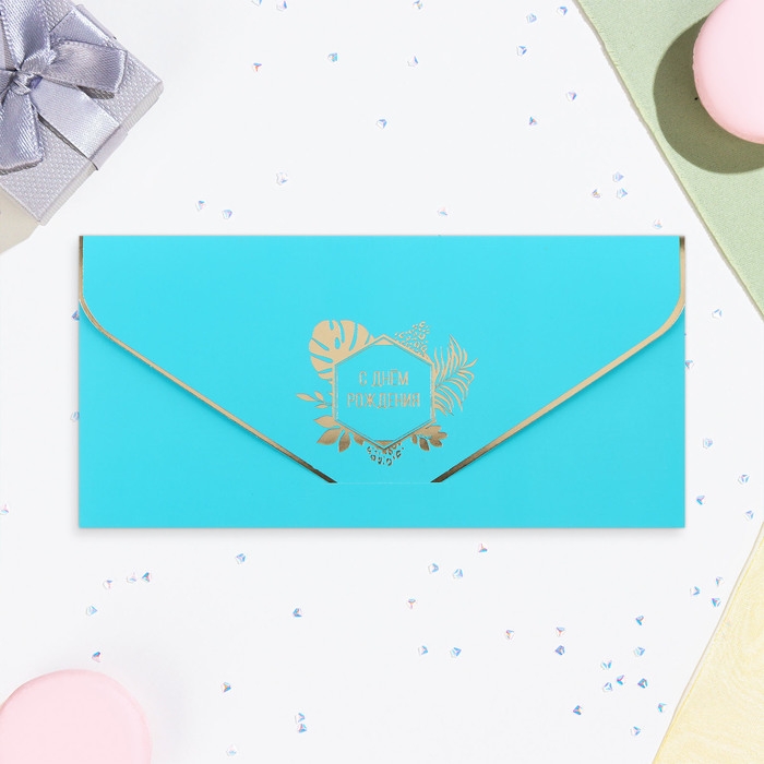 Конверт для денег "С Днём Рождения!" тиффани, софт-тач, тиснение, 19 х 9 см
