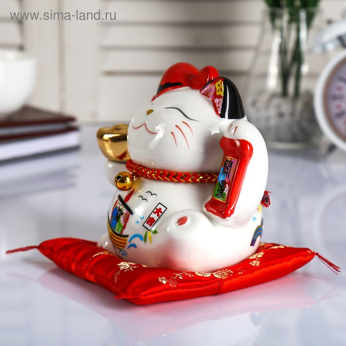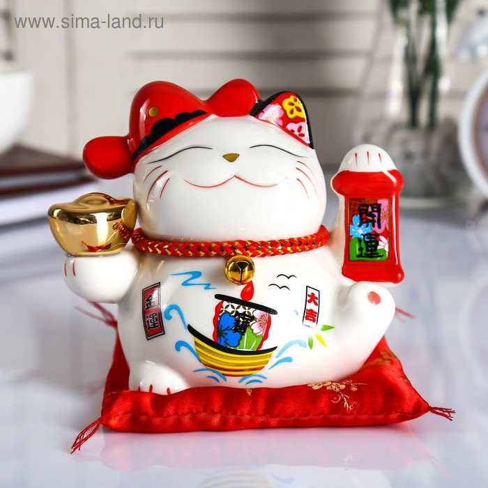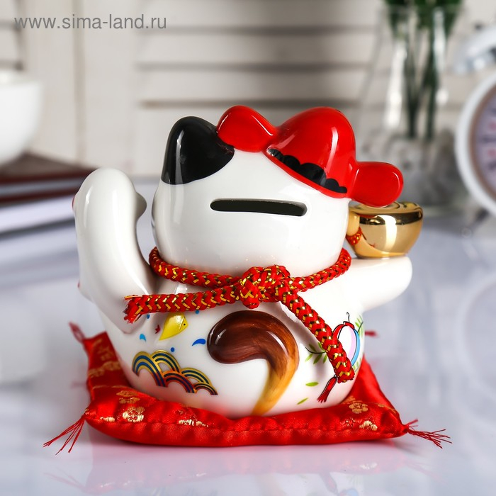 Копилка керамика "Кот манэки-нэко со слитком и колокольчиком" 12х15х9 см