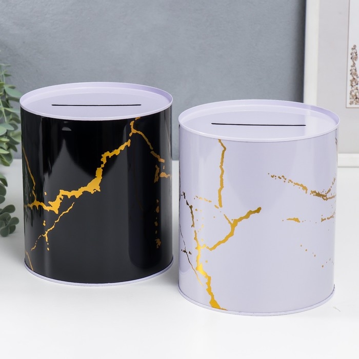 Копилка металл банка "Мрамор с золотыми трещинами" МИКС 15,5х13,5х13,5 см