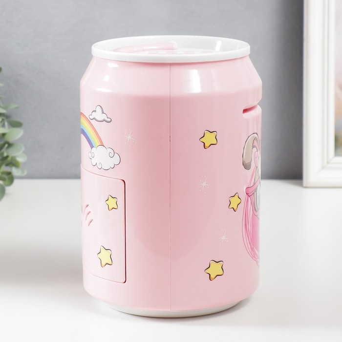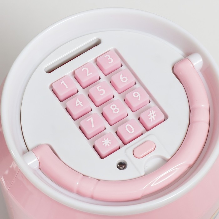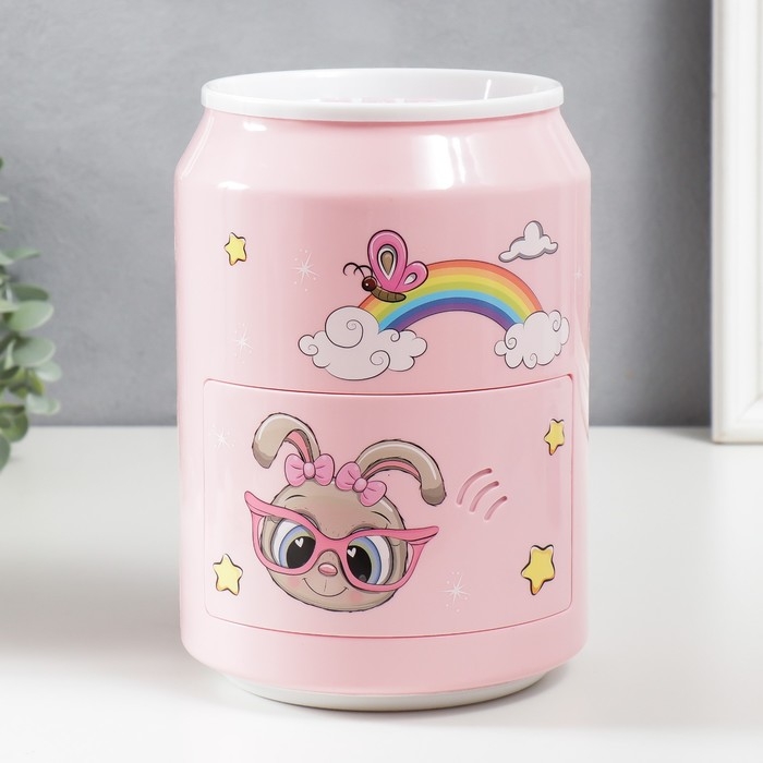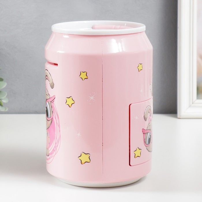 Копилка пластик "Банка. Зайчишка" кодовый замок, звук АА розовый 14х21 см