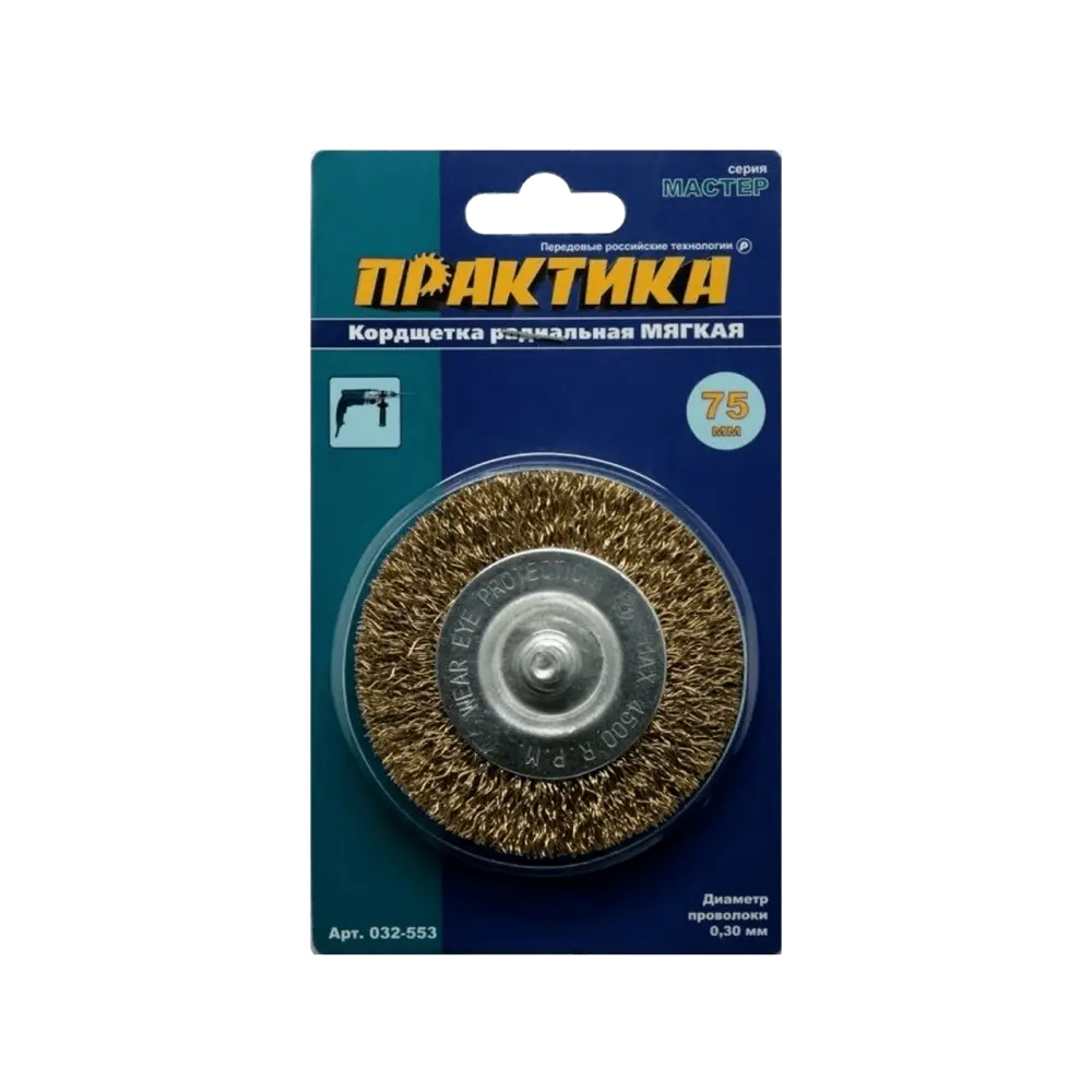 Кордщетка для дрели радиальная мягкая 75 мм хвост 6 мм, Практика 032-553