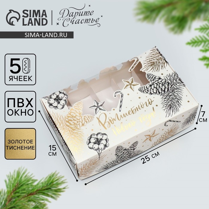Коробка для эклеров с вкладышами «Волшебного Нового года!», 25.2 х 15 х 7 см, Новый год