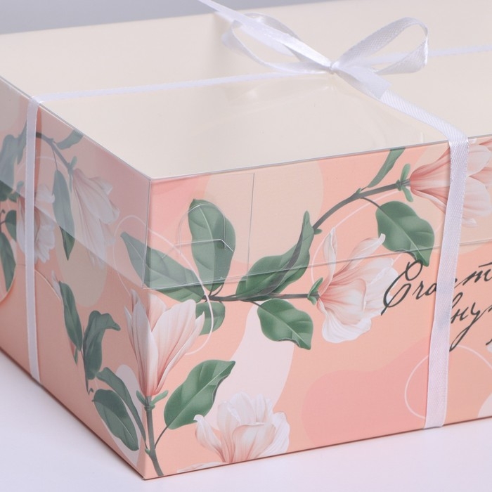 Коробка для 4 капкейков с окном , "Самой прекрасной", 16 х 16 х 10 см