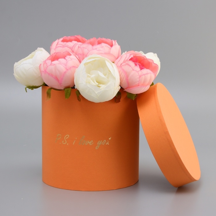 Коробка подарочная круглая"P.s. i love you"оранжевый 18*18*18см