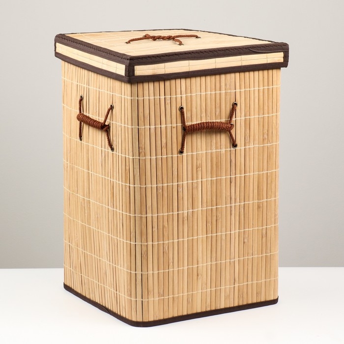 Корзина для хранения, с ручками, складная, 34×34×52 см, бамбук,джут