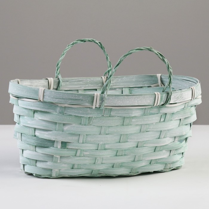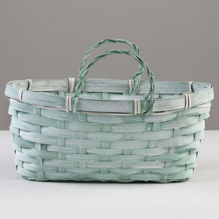 Корзина плетеная, D26 х 13 х 11 см, зеленая, бамбук