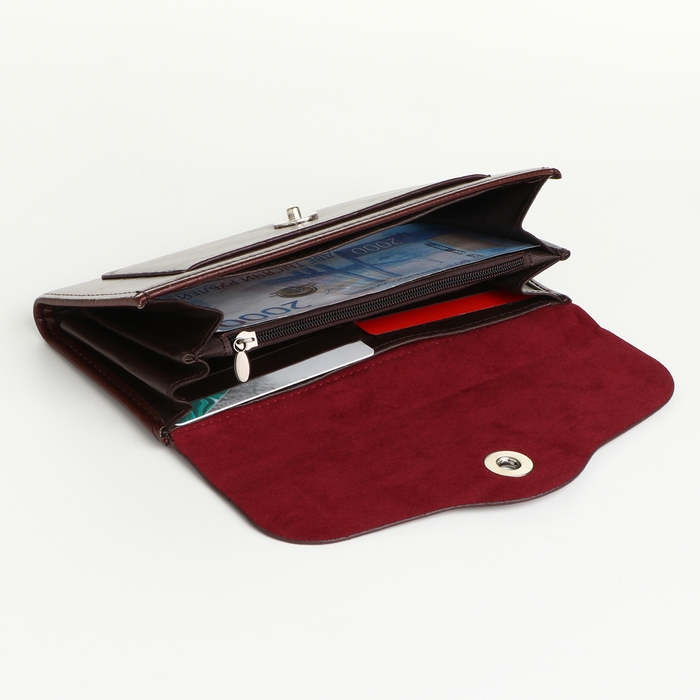 Кошелёк женский на магните, цвет коричневый