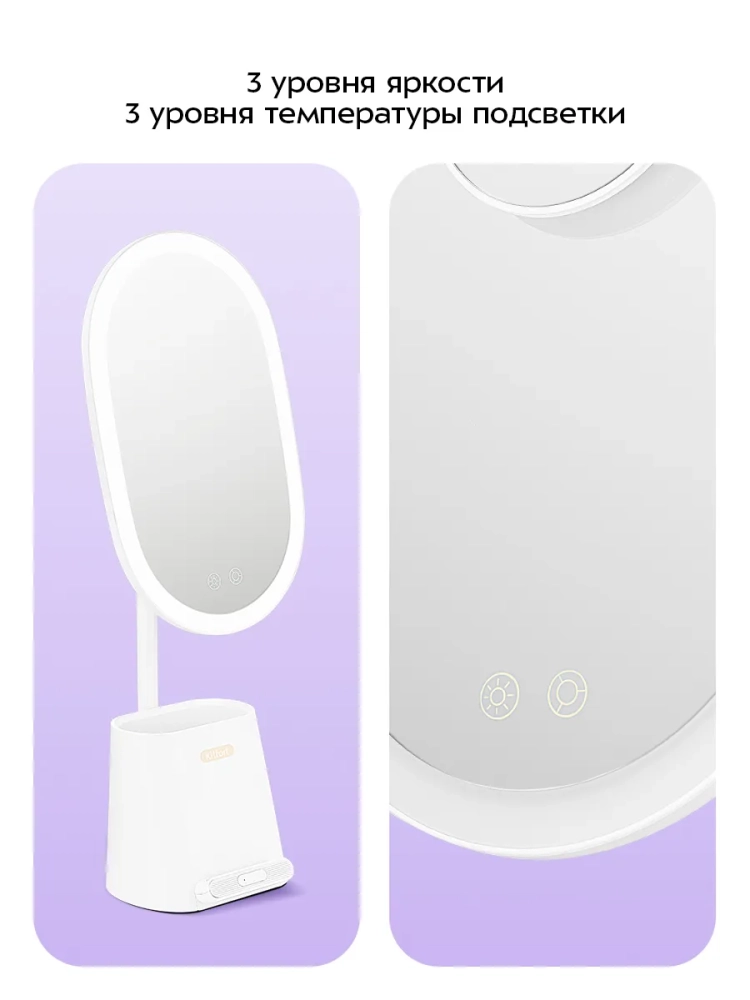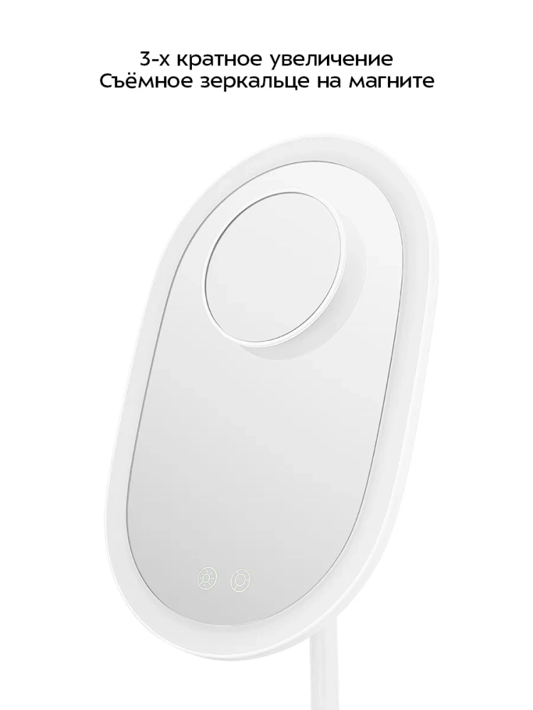 В комплекте также поставляется маленькое зеркало с 3-кратным увеличением, которое крепится на магниты на основное зеркало. Благодаря креплению маленького зеркала ваши руки останутся свободными, вам удобнее будет наносить макияж. Зеркало с увеличением легко снимается, поэтому при необходимости вы можете использовать его, держа в руках. Когда вы не используете зеркало с увеличением, вы можете снять его с основного зеркала, чтобы оно не мешало.